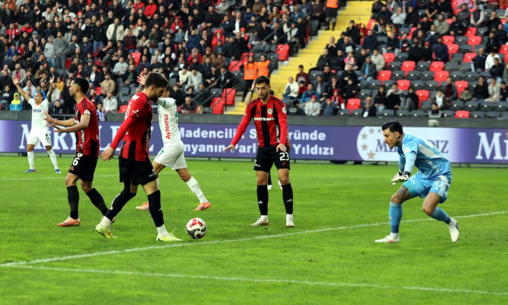 22’nci dakikada Gaziantep FK’da Maxim’in serbest vuruşunda karambolde seken topu Tayyip Talha’dan önce Alanyaspor savunması uzaklaştırdı.