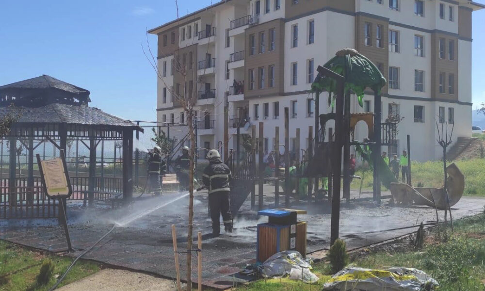 Yangın, akşam saatlerinde 6 Şubat Mahallesi’ndeki 6 Şubat Parkı’nda meydana geldi. Parkta bulunan oyun grupları henüz bilinmeyen nedenle alev aldı. Alevler kısa sürede büyürken, ihbarla olay yerine itfaiye ve jandarma ekipleri sevk edildi. Jandarma çevrede önlem alırken, yangın ise itfaiye ekiplerinin müdahalesiyle kontrol altına alınarak söndürüldü. Yangında yükselen alevler ve duman ise cep telefonu kamerasıyla kaydedildi. Oyun grupları kullanılmaz hale gelirken, yangının çıkış nedeninin belirlenmesi için inceleme başlatıldı.