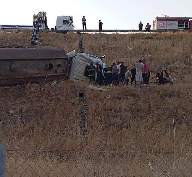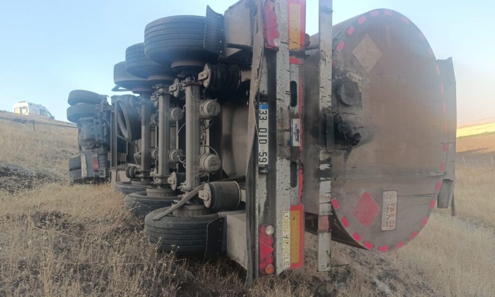 Gaziantep’te devrilen tankerin şoförü yaralandı