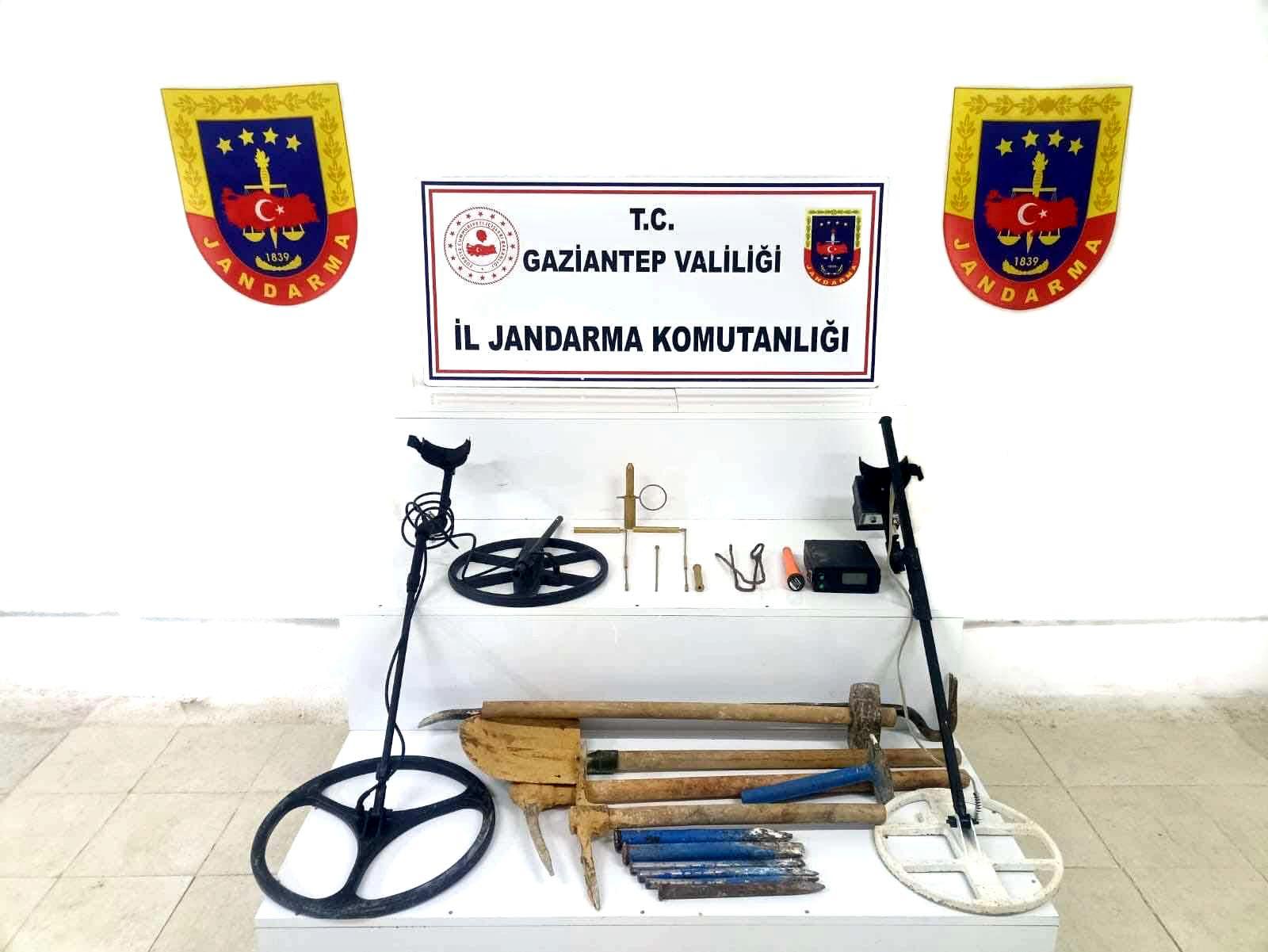 GAZİANTEPte, jandarma ekiplerinin düzenlediği operasyonda kaçak kazı yapan 6 şüpheli suçüstü yakalandı.İl Jandarma Komutanlığı ekipleri, tarihi eser kaçakçılığının önlenmesine yönelik yürüttüğü çalışmalar kapsamında Şehitkamil ilçesi kırsalında kaçak kazı yapıldığı bilgisi üzerine harekete geçti. Ekipler, kırsal bölgede açtıkları çukurda kaçak kazı yapan 6 şüpheliyi suçüstü yakaladı. Kazıda kullanılan aletler ile yakalanan F.İ., F.Y., Y.K., F.D., O.K. ve F.T. gözaltına alındı.Şüphelilerin, jandarmadaki işlemleri sürüyor.