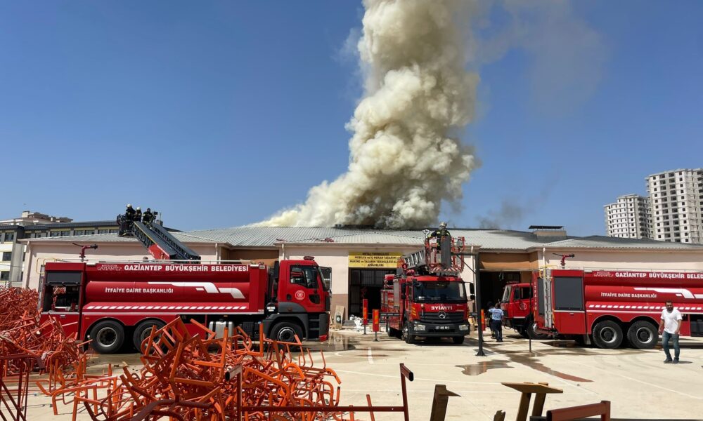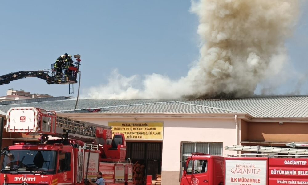 • Gaziantep'te meslek lisesinin mobilya atölyesinde yangın çıktı. İtfaiye ekipleri olay yerine gönderildi. Fotoğraf: Kadir GÜNEŞ/Gaziantep, (DHA)