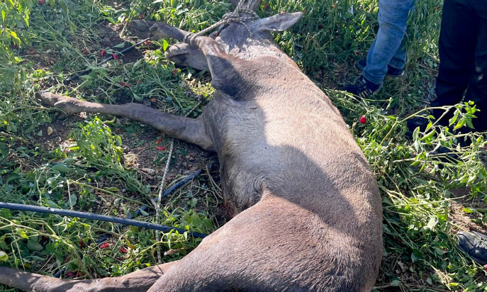 Çubuk Mahallesi kırsalında gece biber bahçesine giren ve sulama hortumlarına takılan koruma altındaki kızılgeyik, mahsur kaldı. Sabah saatlerinde geyiği gören çiftçi Mustafa Öztürk, durumu Tarım ve Orman Müdürlüğü ile Doğa Koruma ve Milli Parklar Şube Müdürlüğü’ne haber verdi. Çağrı üzerine bahçeye gelen ekipler, geyiği mahsur kaldığı yerden kurtarıldı. Veteriner hekimler tarafından sağlık kontrolü yapılan ve herhangi bir sorunu bulunmayan geyik, daha sonra doğaya bırakıldı.