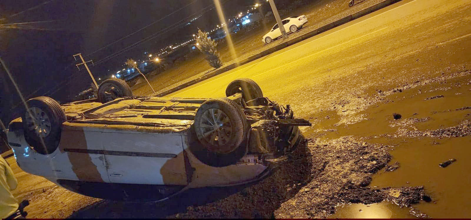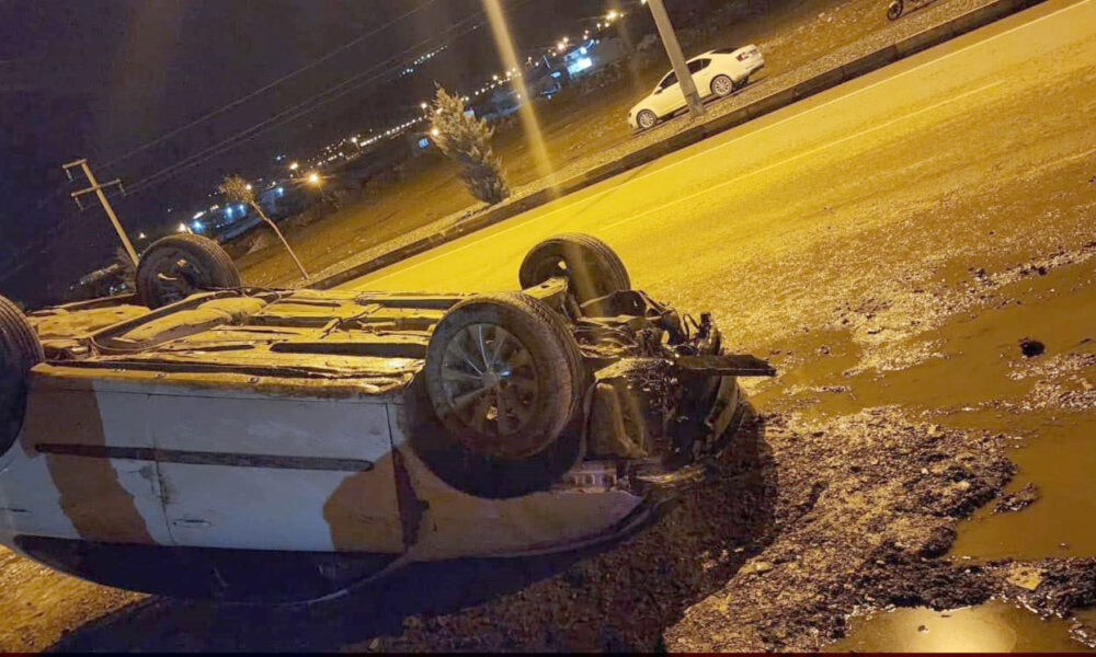• Gaziantep’in Nurdağı İlçesinde, sürücüsünün direksiyon hakimiyetini yitirmesi sonucu takla atan otomobil sürücüsü Mehmet K. (37) yaralandı. Fotoğraf: Gaziantep,(DHA)