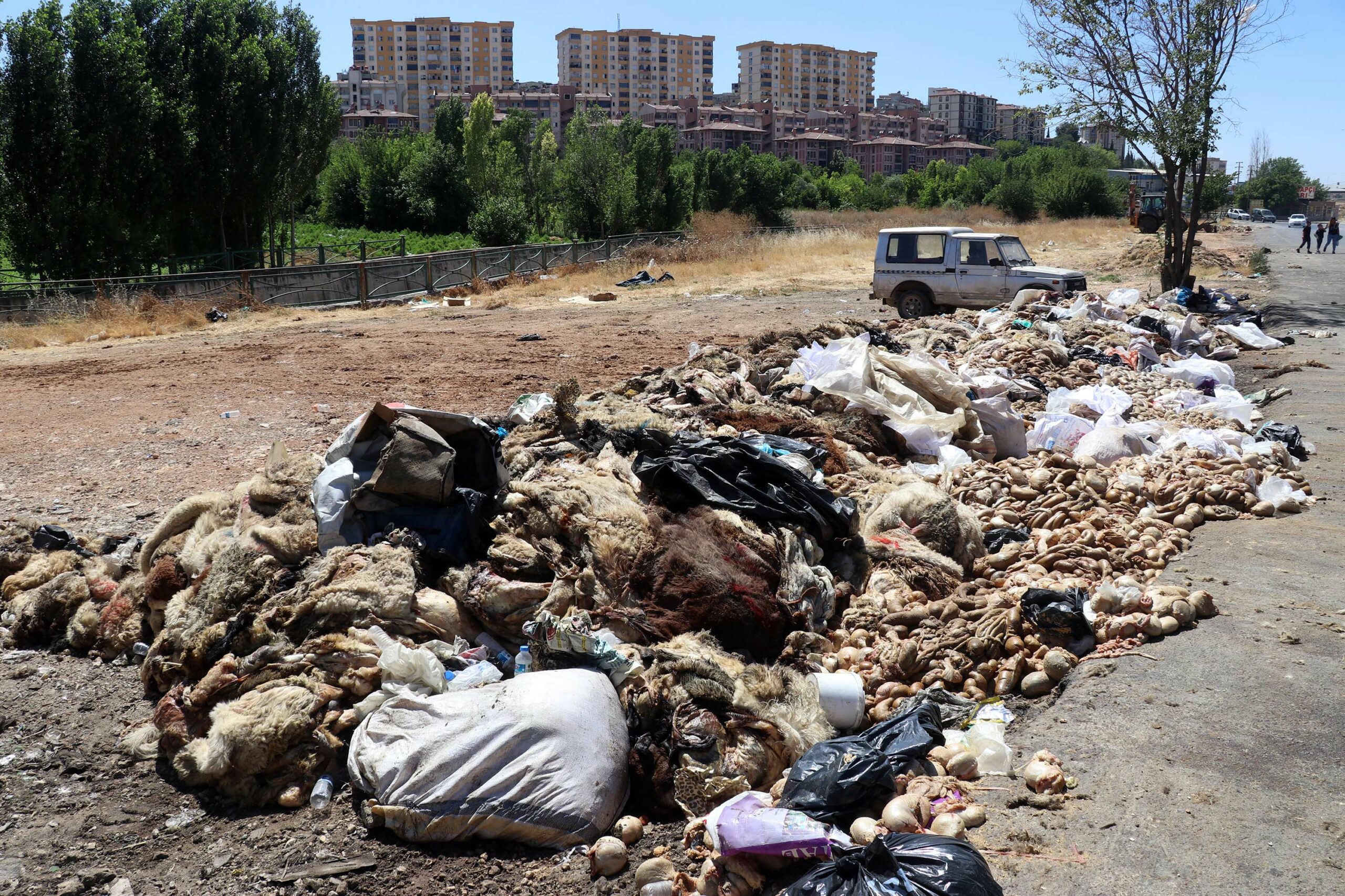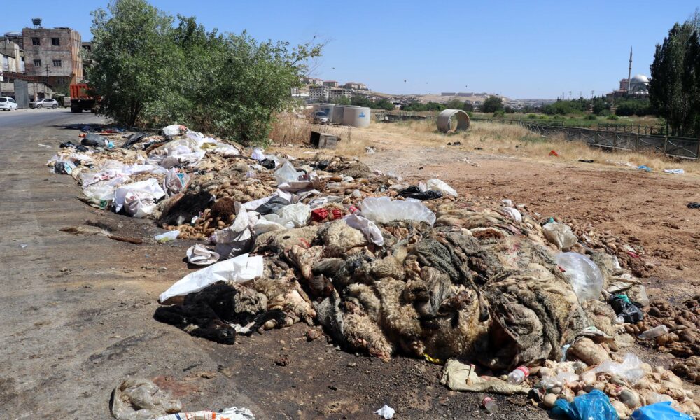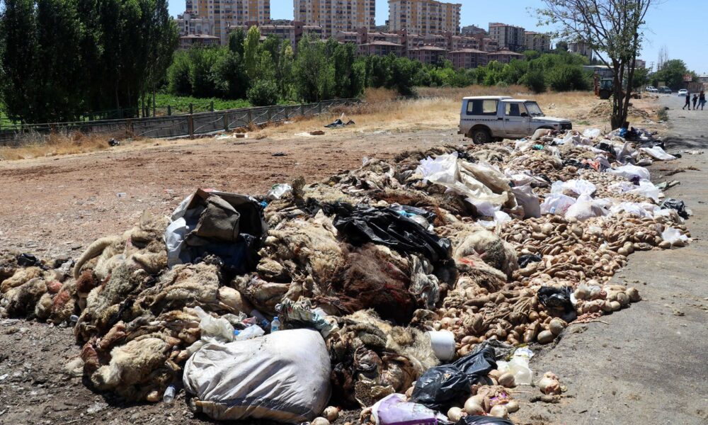 Gaziantep’te, yol kenarlarına atılan yüzlerce kurban derisi ve atık tepki topladı