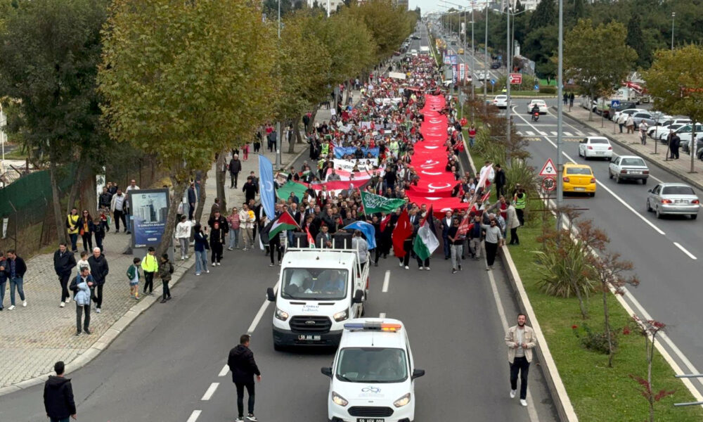 Çorlu Filistin İnisiyatif Derneği tarafından düzenlenen etkinliğe, çok sayıda sivil toplum kuruluşu üyesi ve vatandaşlar katıldı. Çorlu Şehitliği önünden başlayan yürüyüş, Cumhuriyet Meydanı’nda son buldu. Türkiye ve Filistin bayraklarının açıldığı yürüyüşte, ‘Gazze yalnız değildir’, ‘Katil İsrail’, ‘Diren Filistin’ sloganları atıldı. Yaklaşık 3 bin kişinin katıldığı etkinlikte, Gazze’de katledilen bebekleri temsilen yapılan maket bebekler, Filistin bayrağının üzerine bırakıldı.