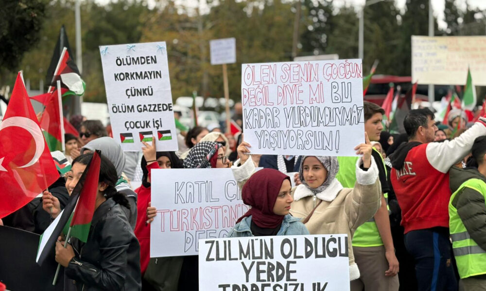 Konuşmaların ardından kalabalık, ellerindeki Filistin bayraklarıyla dualar etti. Program sonunda kalabalık, farkındalık yaratmak amacıyla Filistin halkına umut ve barış dileğiyle gökyüzüne balonlar uçurdu.