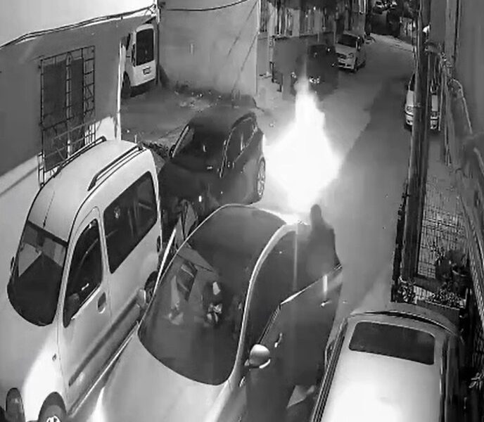 Görüntülerde şüphelilerden 2’sini sokağa yaya olarak, diğer 2’sinin ise otomobille girdiği görüldü. Etrafı kolaçan eden şüpheliler otomobilden aldıkları havai fişeği yere koyup, ateşledikten sonra araçla bölgeden uzaklaştı.
