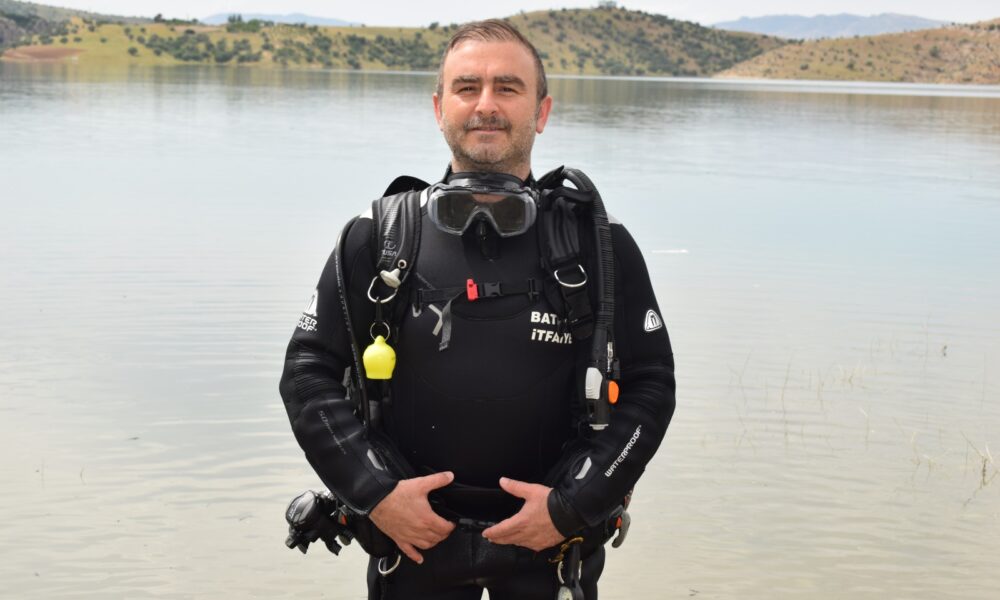 Geçen yıl 10 kişinin boğulduğu Batman’da İtfaiye Müdürlüğü’nden 6 uzman dalgıç ekip, iç sulardaki akarsu, çay ve göletlerde inceleme yaparak su altındaki tehlikeleri görüntüledi. (Fotoğrafta, Necat Tanış) Fotoğraf: Batman, (DHA)
