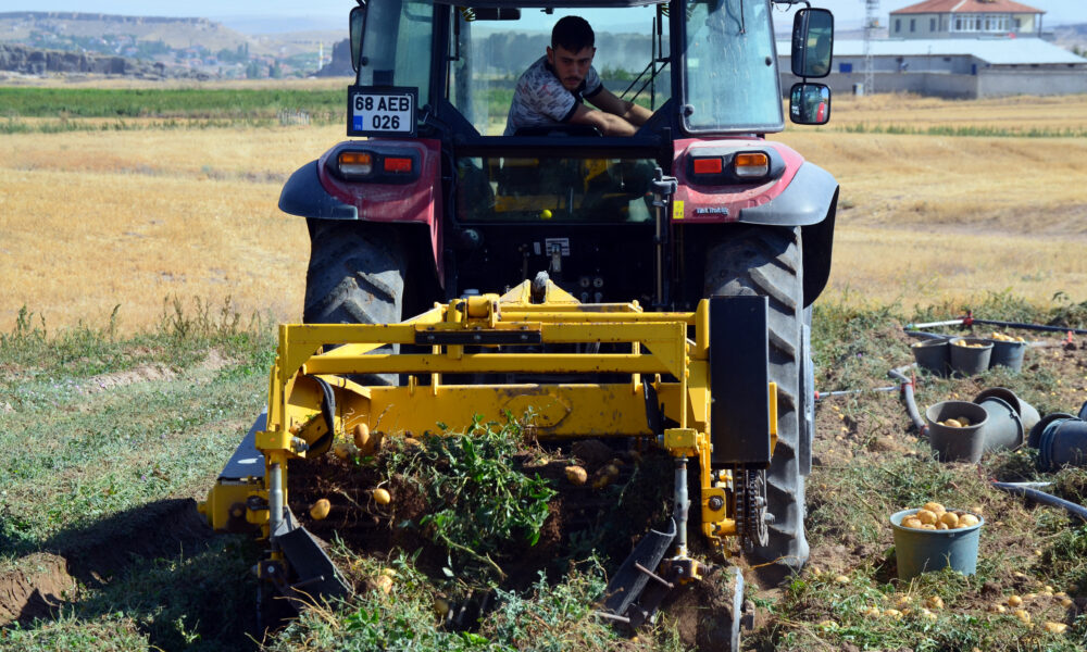 Aksarayda 80 bin dekar alanda yaklaşık 370 bin ton patates üretiliyor. Patateste hasat dönemi başlarken, Geçen yıl tarladan kilosu 10 TLye alınan patatesin fiyatı bu yıl ürün fazlalığı nedeniyle 5 TLye düştü. Güzelyurt ilçesi Selime beldesinde tarlasındaki patatesi hasat etmeye başlayan Görkem Çevik, “Nisan ayı başında yazlık patatesi, gübreleme ve ilaçlamasını yaparak tarlayla buluşturduk. Ağustos ayıyla söküme başladık. Bölgemizde 3,5-4 ayda olan ürünlerimizin hasadına başladık. Bu yıl 240 dekar alanda yazlık patates ekimi yaptık ve dekarda 3-4 ton rekolte aldık. Bu yıl patates fiyatlarımız, geçen yıla oranla yüzde 50 oranda düştü. Geçen yaz mevsiminde tarladan 10 liraya çıkan patates, bu yıl 5 liraya kadar düştü. Yazlık patates ekiminin bol olması, fiyatları yüzde 50 düşürdü. Bu yıl mahşer yeri gibi ekim var. Geçen yıl tarlada bir ara 11-12 liraya kadar patates çıkmıştı. Patates üreticimiz, Geçen yıl gibi bu yıl da patates para eder diye her yere patates ekimi yaptı. Hal böyle olunca ürün bol, fiyatlar düşük” dedi.