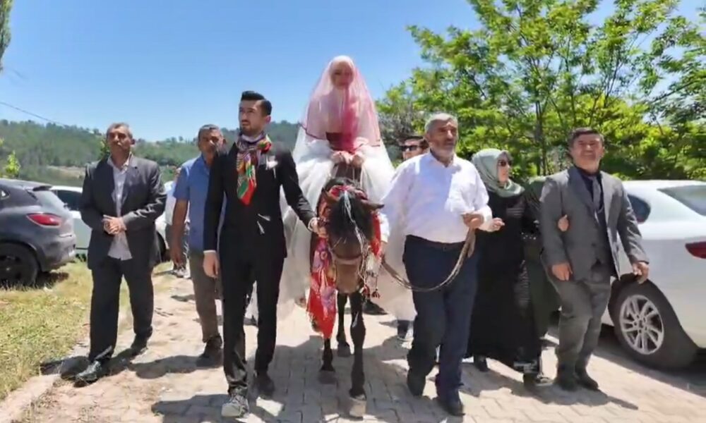 GELİN AT ÜSTÜNDE DÜĞÜN ALAYINA KATILDI