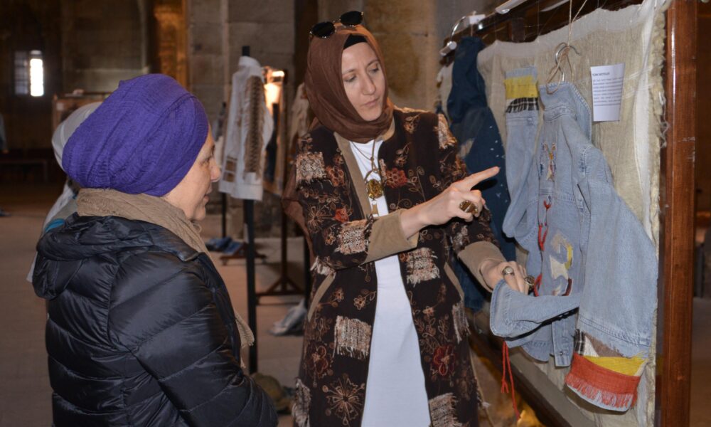 Atatürk Üniversitesi Güzel Sanatlar Fakültesi Tekstil ve Moda Tasarımı Bölümü Öğretim Üyesi Doç. Dr. Zeynep Kırkıncıoğlu, tekstil ve moda tasarımında sürdürülebilirlik kapsamında öğrencileriyle proje yaptıklarını söyledi. Atıl durumdaki, kullanılmayan kot ceketleri ile atıl durumdaki ehram kumaşlarını topladıklarını belirten Kırkıncıoğlu, “Hepsini yıkadık, tamir ettik. Yeniden kullanılabilecek hale getirdik. İki kullanılamayan materyali yan yana getirdik. Öğrencilerimiz Erzurum temasıyla konu seçtiler. Bir öğrencimiz dadaşın hikayesini aldı, bir öğrencimiz tabyaları aldı, bir öğrencimiz saat kulesini aldı. Bir öğrencimiz Nene Hatunu, Palandökeni karı aldı. Kendi kompozisyonlarını oluşturdular ve tasarım yaptılar. Yeniden üreterek bunları tasarım haline getirdiler. 50ye yakın bir koleksiyon çıktı ama burada 21 tanesini sergiledik. Eskiyi biz yeni çağdaş, insanların talep edebileceği, gençlerin talep edebileceği kullanılabilir bir tasarım ürün haline getirdik” diye konuştu.