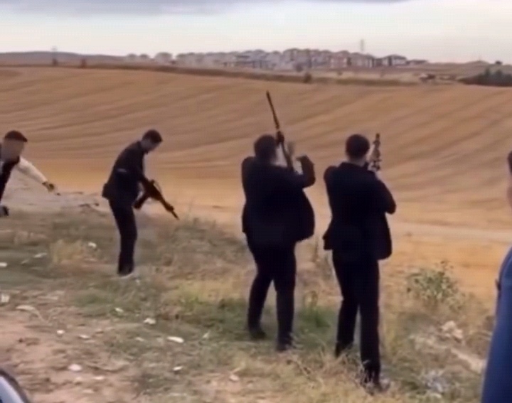 Dün Huzur Mahallesi’ndeki düğün öncesinde gerçekleştirilen gelin alma sırasında, konvoydaki araçlarından inen 4 davetli, 3 av tüfeği ve 1 tabancayla havaya defalarca ateş etti. O anlar, konvoydaki diğer davetliler tarafından cep telefonu kamerasıyla kaydedilip, sosyal medyadan paylaşıldı.