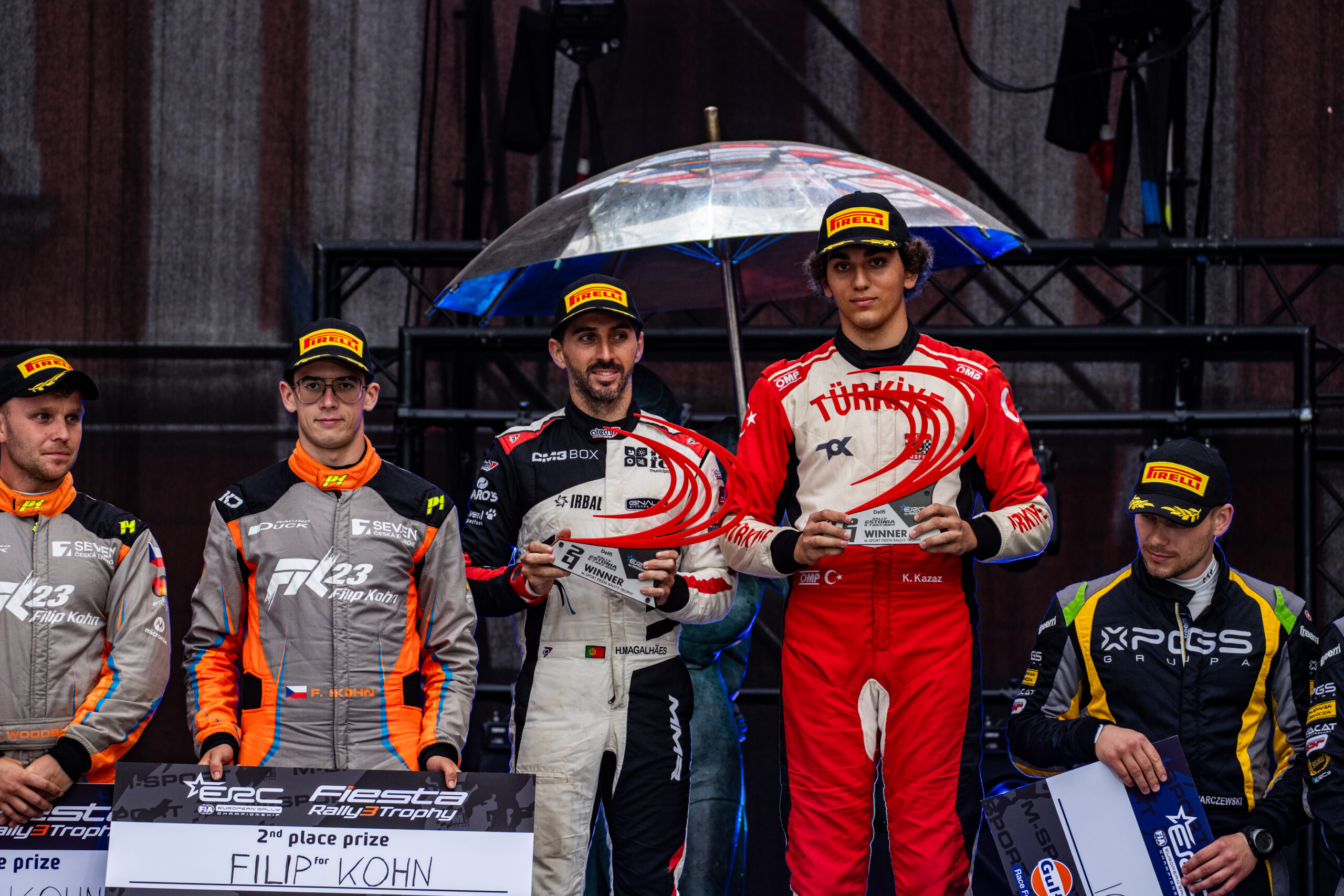 Copilotu Hugo Magalhaes ile Letonya Rallisi ERC3 klasmanında da dördüncü olarak önemli puanlar almayı başaran Kerem Kazaz, Avrupa Ralli Şampiyonası podyumunda İstiklal Marşını gururla dinletti.