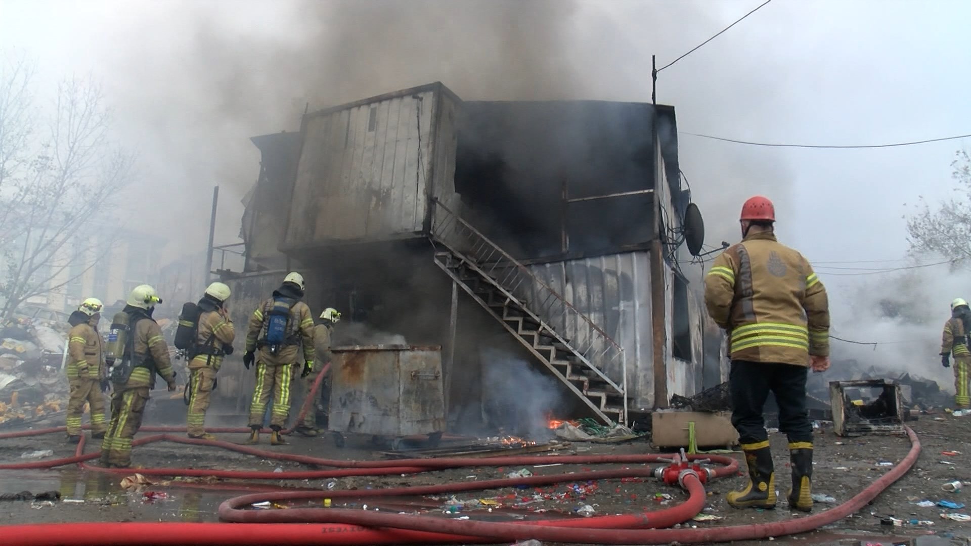 Maltepe'de geri dönüşüm tesisinde işçilerin kaldığı konteynerde yangın