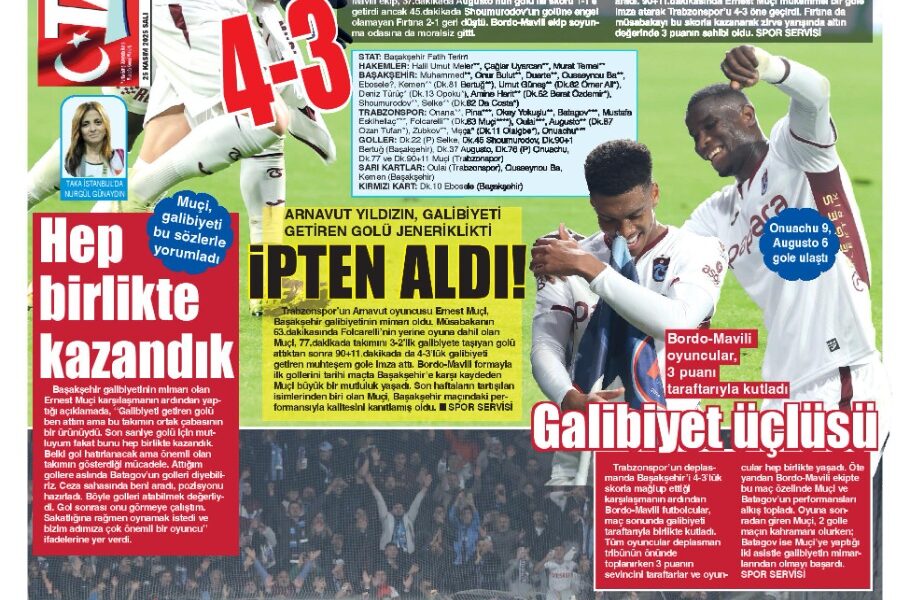 Öte yandan Trabzon’da yayın yapan yerel gazeteler de Trabzonspor’un RAMS Başakşehir FK karşısında elde ettiği galibiyeti manşetlerine farklı başlıklarla taşıdı. Trabzon yerel basın manşetleri şu şekilde: