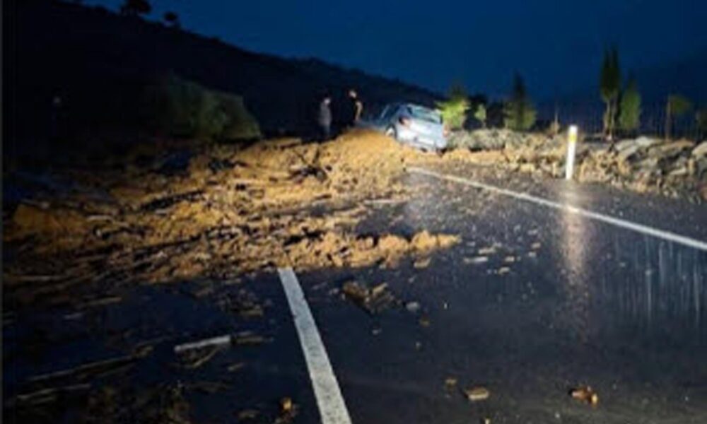Gökçeada’da sağanak su baskınlarına yol açtı; heyelan nedeniyle yol kapandı