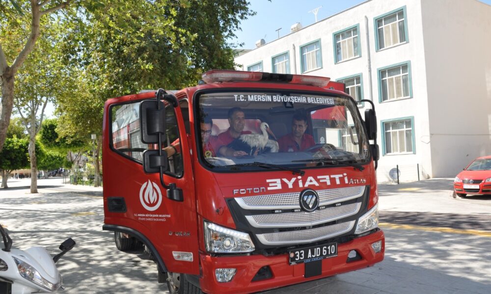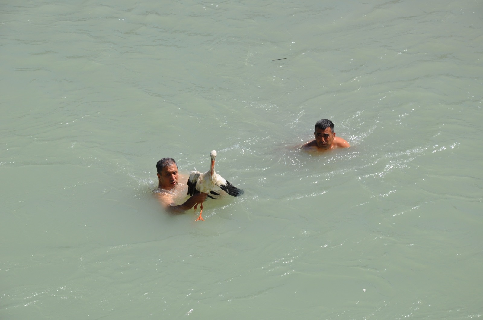 Göksu Nehri’nde mahsur kalan yaralı leyleği, itfaiye erleri yüzerek kurtardı