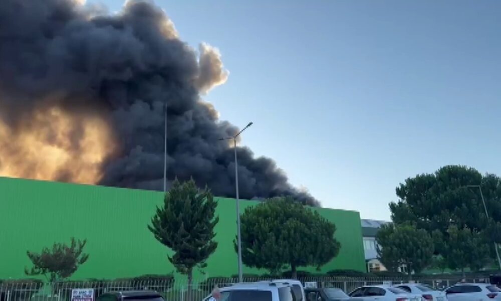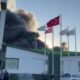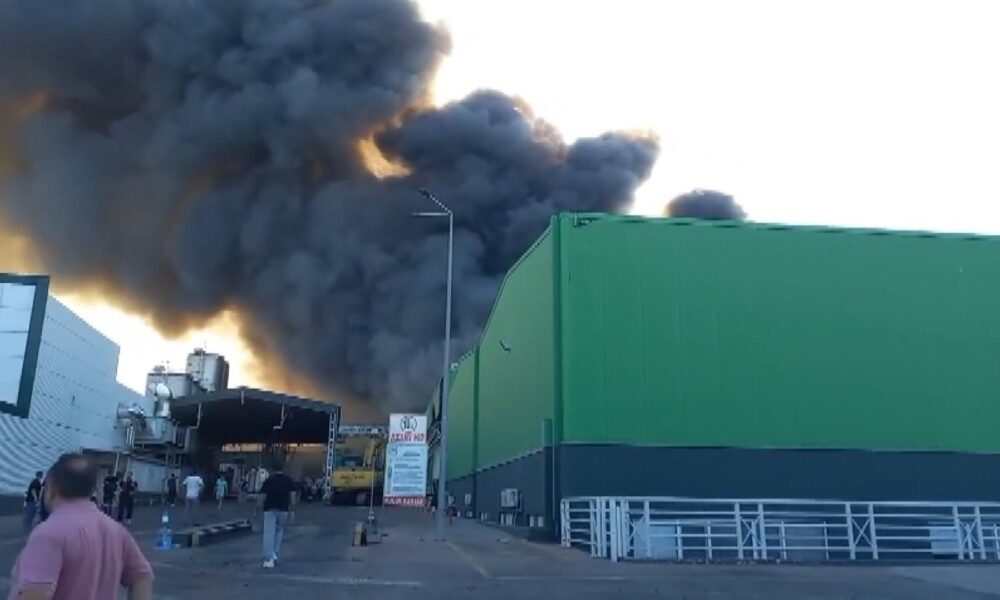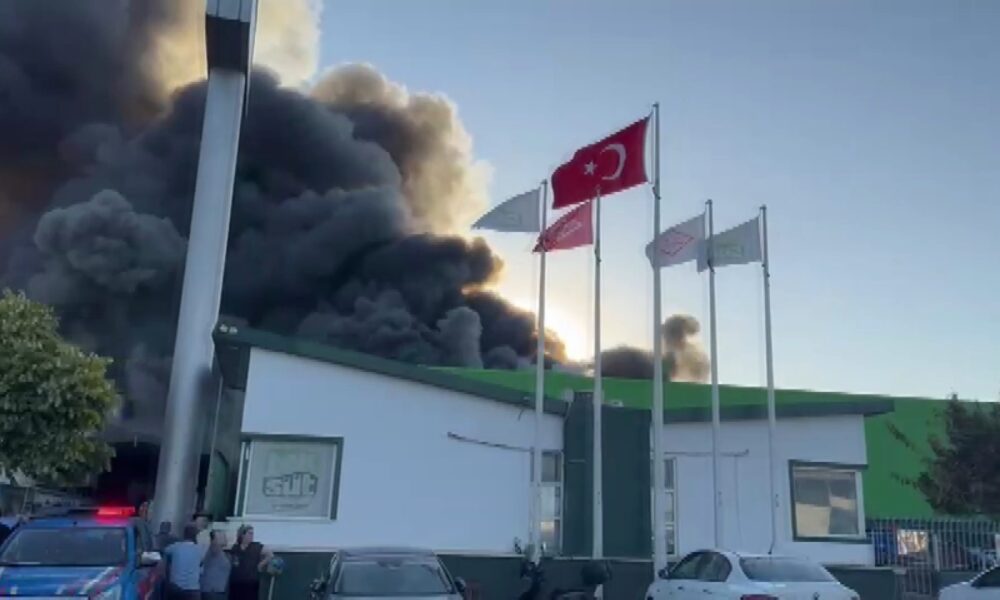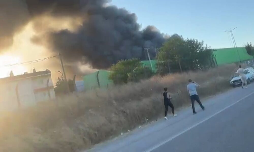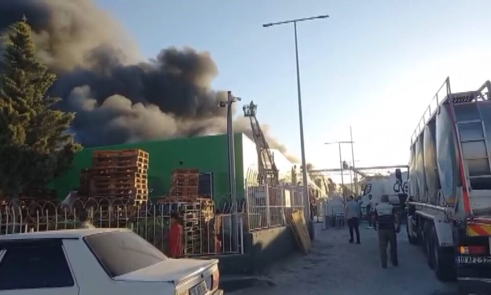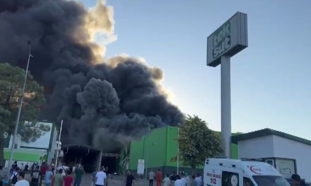 Balıkesir'in Gönen ilçesinde süt ürünleri fabrikasında yangın çıktı. Alevlere müdahale sürüyor. Fotoğraf: Gönen (Balıkesir), (DHA)