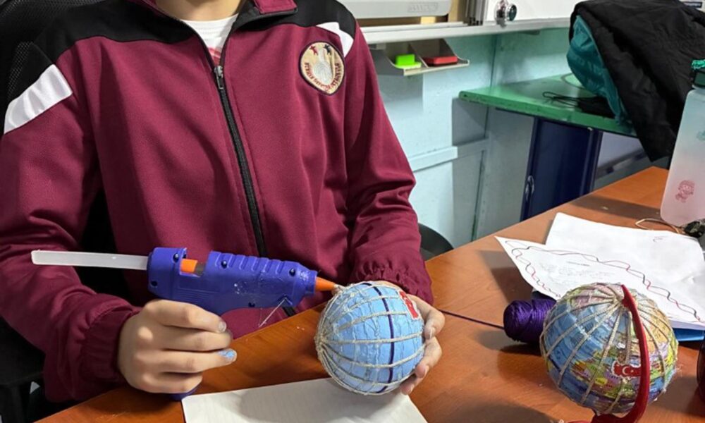 “Küreleri hazırlık sürecinde fikir alışverişinde bulunduk. İplerle yapabileceğimize karar verdik. Bu dünyaları satın aldık. Üstüne tek tek ipleri silikonladık. İlk başta zorlandık ama sonra elimiz alışmaya başladı. Biz konuyu öğrenirken de ilk başta zorlanmıştık. Sonra sonra küreleri yapmaya başlayınca bizim de bilgilerimiz pekişti. O çocuklarla birlikte yapmak, güzel bir duyguydu.”