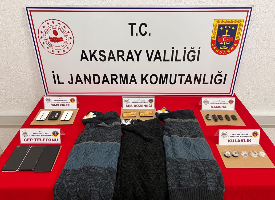 M.E.nin giydiği kazağın göğüs kısmında dışarıdan görülmeyecek şekilde bir mini kamera, iç kısmına özel olarak gizlenmiş ses aktarım düzeneği, iç çamaşırının içerisine özel tasarlanmış bölümde görüntü aktarım ve bir kablosuz internet cihazı ile kulağına özel olarak yerleştirilen kulak içi kulaklık ele geçirildi. R.A. ve Ş.E.’nin üzerlerinde ve içerisinde bulundukları araçta yapılan aramalarda ise 3 mobil kablosuz internet cihazı, 3 cep telefonu, 9 mini gizli kamera, 8 kulak içi mini kulaklık, 23 mini lityum pil, 4 mobil ses aktarım cihazı, 2 mobil kamera görüntü aktarım cihazı, 3 sınava girecek şahıslara giydirmek için üzerine özel düzenek yerleştirilmiş kazak, sınava girecek şahıslara giydirmek için üzerine özel düzenek yerleştirilmiş 3 iç çamaşırı, 2 taşınabilir güç kaynağı ve 1 telefon bataryası ile şarj aleti ele geçirildi.