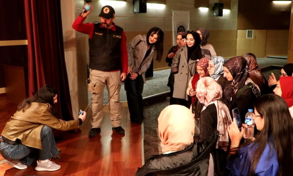 Erzurum Emniyet Müdürlüğü, Atatürk Üniversitesinde öğrencilere yönelik Narkogençlik eğitimi düzenlendi. Nene Hatun Kültür Merkezindeki eğitimde konuşan Emniyet Müdürü Onur Karaburun, öğrencilerden uyuşturucuyla mücadelede destek istedi. Erzurumda narkotik konusunda önemle bir sıkıntı olmadığını ancak uyuşturucuya sıfır toleransla hareket ettikleri için desteğin önemli olduğunu söyleyen Karabarun, “Bu tek başına bir grubun yapabileceği bir mücadele değil. Sadece polisin, kolluk güçlerinin, Sağlık Bakanlığı’nın, STKların, ailelerin yapabileceği bir mücadele değil, hep birlikte omuz omuza verirsek sonuç alabiliriz. Yoksa gerçekten sadece karanlığa taş atarız. Allaha şükür, Erzurumda narkotik konularla ilgili çok büyük sıkıntımız yok. Hep söylüyorum; narkotikle ilgili rakamda bile bir fazla. Hedefimiz sıfır ama bunu ancak sizlerle yapabiliriz. Toplumun okumuş gençleri, bilinçli gençleriyle yapabiliriz. Bir taneye bile tahammülümüz yok. Ülkemizdeki benzer nüfus yapısına sahip ülkelerine baktığımızda kötü yerde değiliz. Mücadelemiz gayet iyi gidiyor ama sıfıra kadar kararlıyız” dedi.