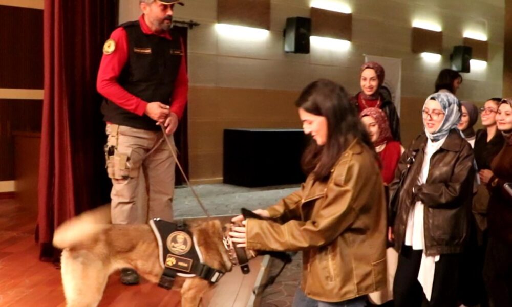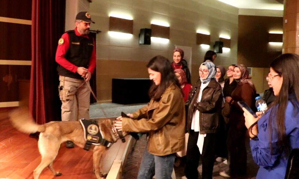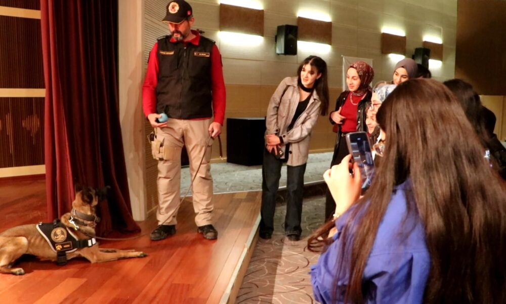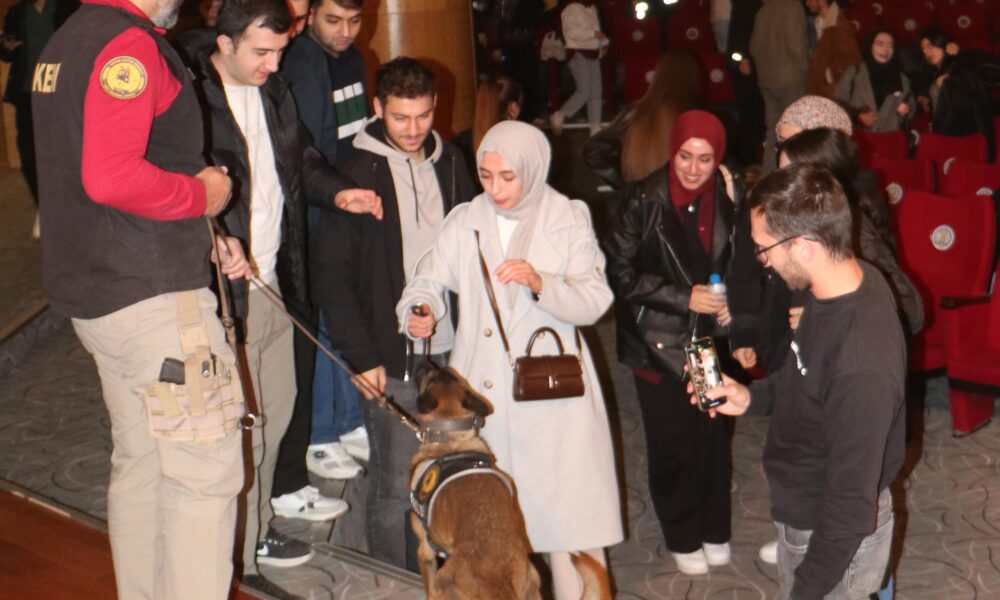 Gösteri yapan narkotik köpek ‘Hera’ ile fotoğraf için sıraya girdiler