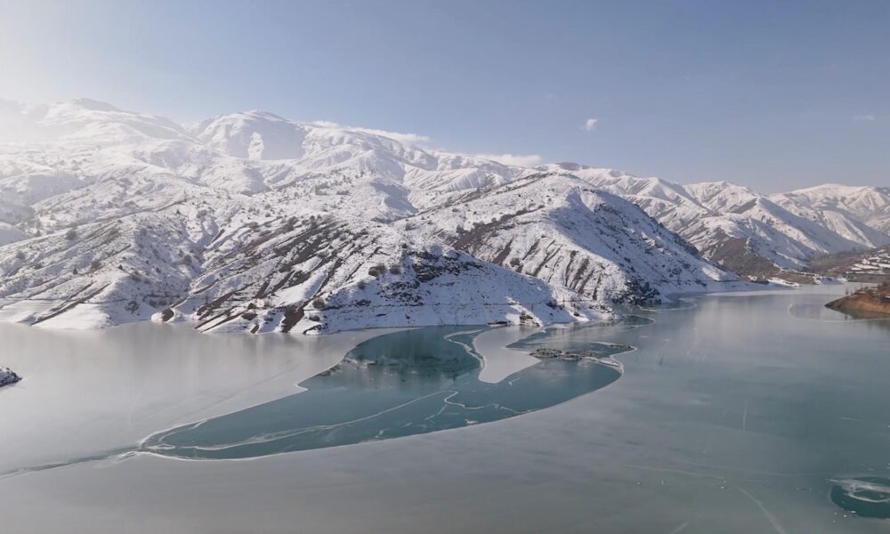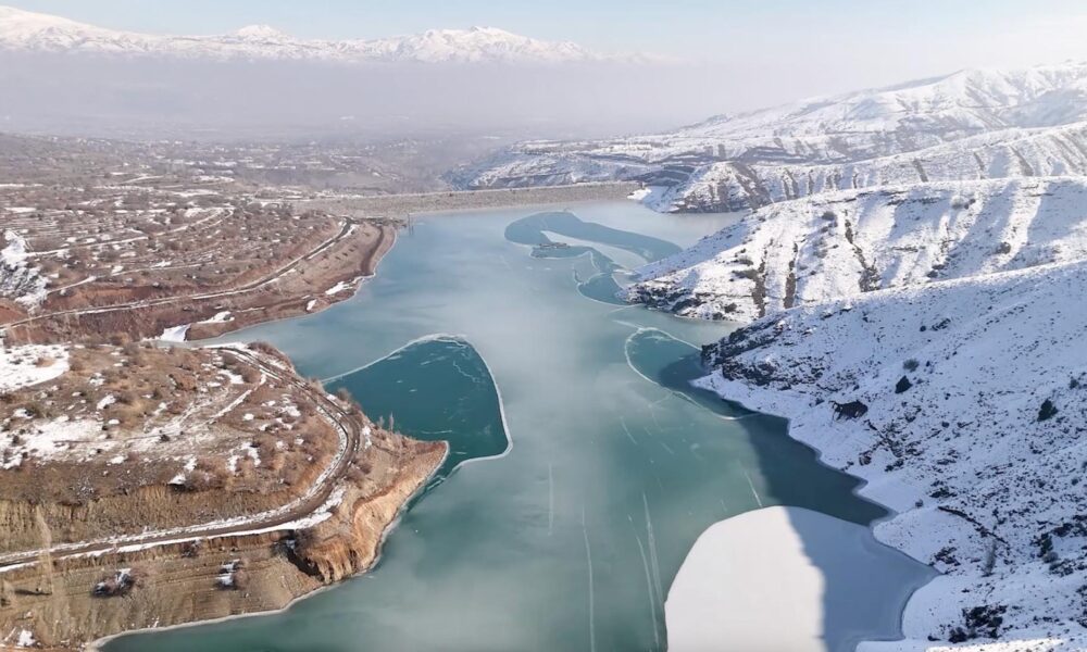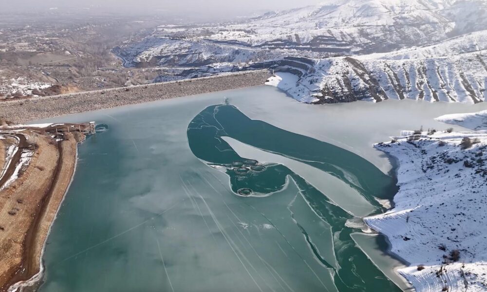 Göyne Baraj gölünün yüzeyi buz tuttu