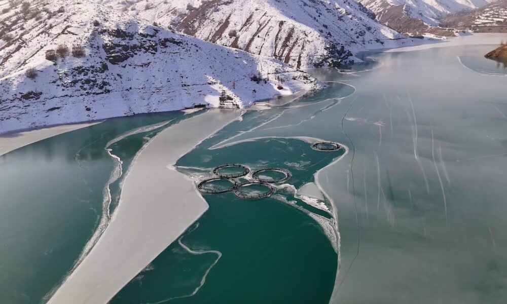 Çatalarmut köyünde DSİ tarafından inşa edilen ve tarım arazilerinin sulanmasında kullanılan, aynı zamanda kafes balıkçılığı da yapılan Göyne Baraj gölünün yüzeyi buz tuttu. Güzel görüntüler oluşan baraj gölü, doğa ve yaban hayatı fotoğrafçısı Fatih Civan tarafından dron ile havadan görüntülendi.