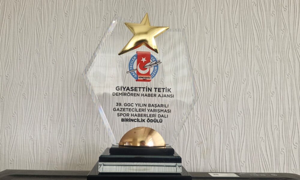 • Güneydoğu Gazeteciler Cemiyeti (GGC) tarafından düzenlenen ‘Yılın Başarılı Gazetecileri Yarışması’nda Demirören Haber Ajansı (DHA) Muhabiri Gıyasettin Tetik ‘Altın madalyalı çırak’ haberiyle spor dalında birincilik ödülü aldı. Fotoğraf:Diyarbakır(DHA