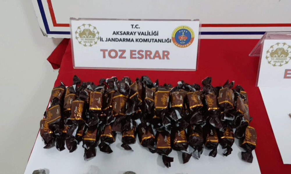 Aksaray İl Jandarma Komutanlığı ekipleri, Hollandadan izne gelen D.K.nin uyuşturucu sattığı bilgisini aldı. Bunun üzerine D.K.nin evine operasyon düzenleyen jandarma, yaptığı aramada Hollandadan getirdiği hediyelik çikolatalar içinde 121 paket halinde 1 kilo 210 gram toz preslenmiş esrar, 294 gram kokain, 15 ecstasy hap, 1 adet tabanca ve 40 tabanca fişeği ile 2 adet hassas terazi ele geçirildi. Gözaltına alınan D.K., dün sevk edildiği mahkemece tutuklandı.
