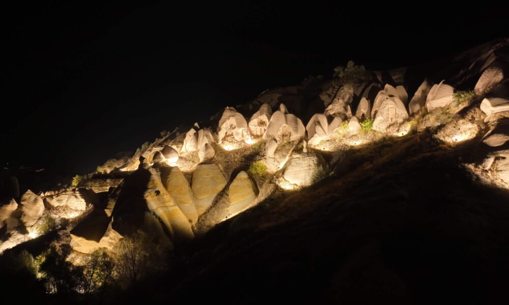 Kültür ve Turizm Bakanı Mehmet Nuri Ersoy, sosyal medya hesabından yaptığı paylaşımda, “Cumhuriyetimizin 101inci yılında Kapadokyanın ihtişamını zamansızlaştırıyoruz. Uçhisardan Göremeye uzanan Güvercinlik Vadisi, tarihi ve doğal güzellikleriyle artık geceleri de misafirlerini ağırlayacak. Cumhuriyetimizin ışığı ile gece müzeciliği uygulamamız kapsamında aydınlattığımız, efsanelere konu olan bu eşsiz güzelliğin görkemi hiç kararmaksızın hep parlayacak” dedi.