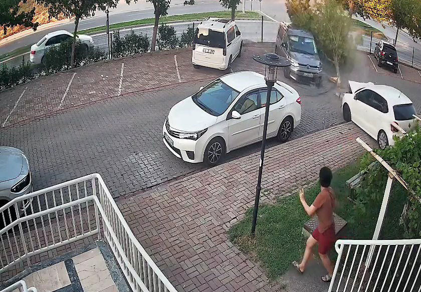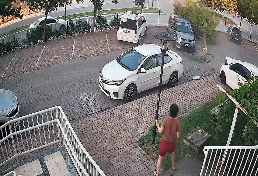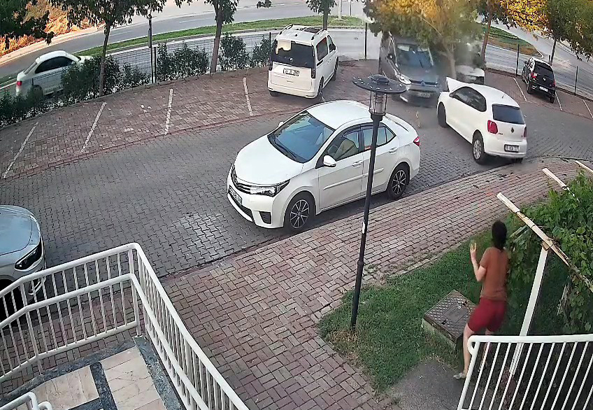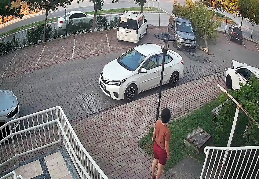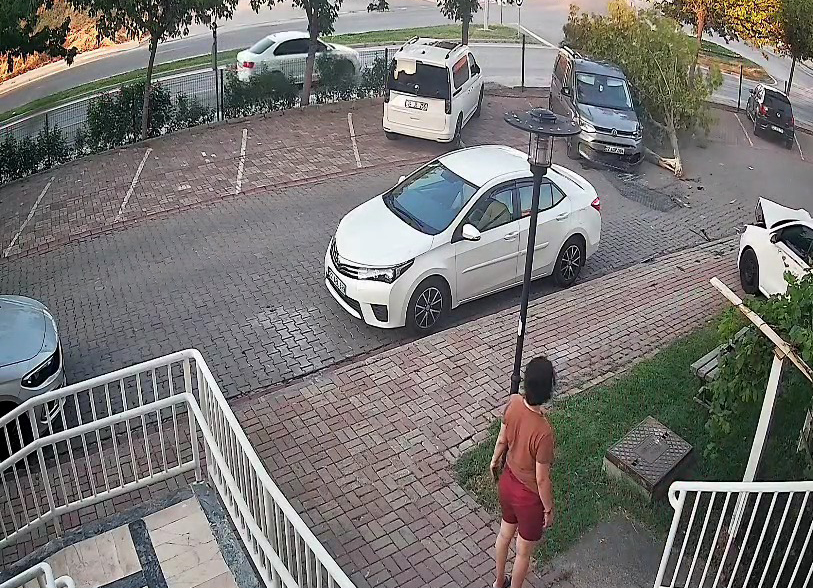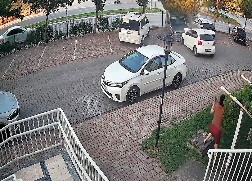 Kaza, Fatih Mahallesi Prof. Dr. Türkan Saylan Bulvarında meydana geldi. Naim Süleymanoğlu Caddesine dönmek isteyen M.Z. idaresindeki 22 ADP 004 plakalı hafif ticari araç, döner kavşakta kontrolden çıktı. Savrulan hafif ticari araç, bir sitenin çitlerine, ağaca ve otomobile çarptı. Kaza sitenin güvenlik kamerasına yansırken, inceleme başlatıldı.