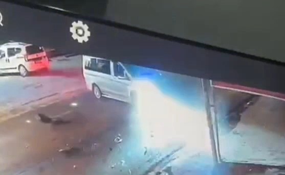 Hafif ticari araç sürücüsü Y.K. gözaltına alınırken, kaza bir iş yerinin güvenlik kamerasına yansıdı.