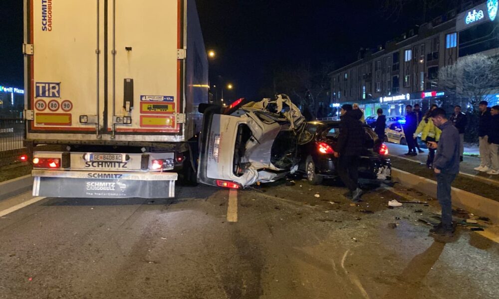 Hafif ticari araç, otomobilinin yanında bekleyen sürücü ile TIR’a çarptı: 1 ölü, 1 yaralı