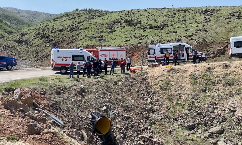 • Elazığ'da, kontrolden çıkarak şarampole yuvarlanan hafif ticari araçtaki, 1’i ağır 4 kişi yaralandı. Fotoğraf: Elazığ,(DHA)