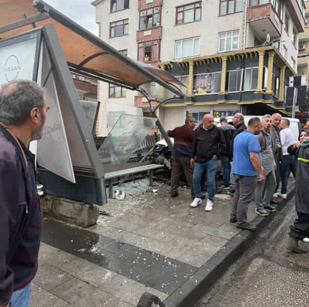Kaza, dün öğle saatlerinde Kalkınma Mahallesinde meydana geldi. İddiaya göre; sürücüsünün bagajdaki suları taşıdığı sırada el freninin çekilmesini unuttuğu 61 TT 760 plakalı hafif ticari araç, yokuş aşağı hareket etmeye başladı. Yokuş aşağı hızlanan araç, yol kenarındaki otobüs durağına çarptı. Kaza ile çevredekilerin panik yaşadığı anlar güvenlik kameralarına yansıdı. Kaza sonrası hasar gören otobüs durağı ve araç bulunduğu yerden kaldırılırken, soruşturma sürüyor.