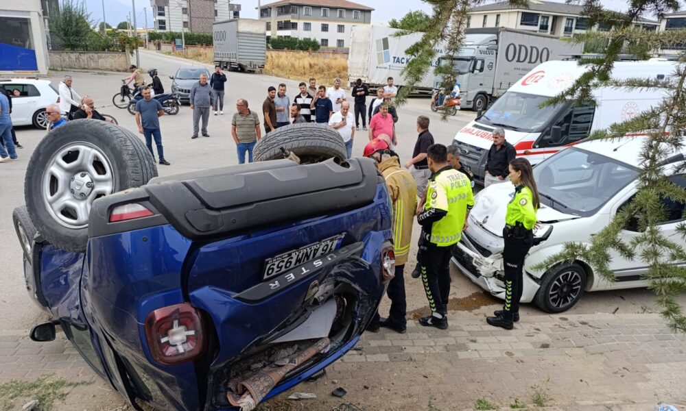 Hafif ticari araçla çarpışan cip takla attı; 3 yaralı