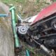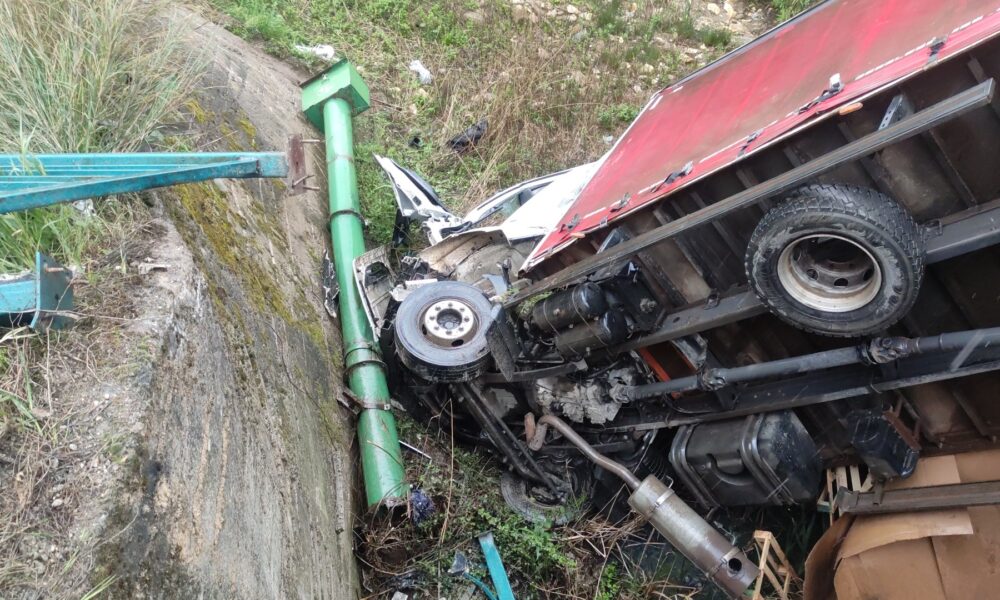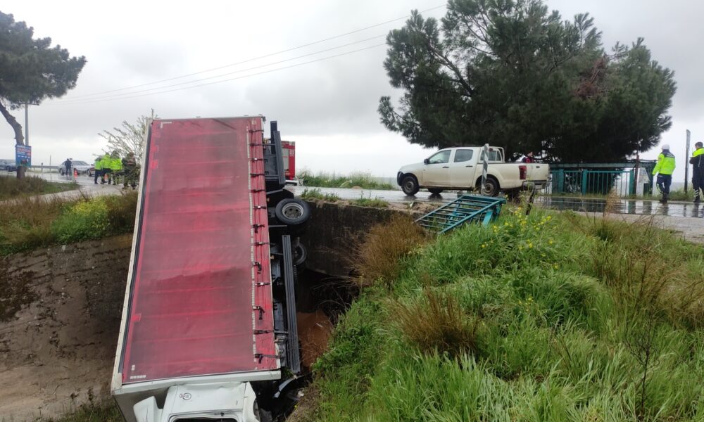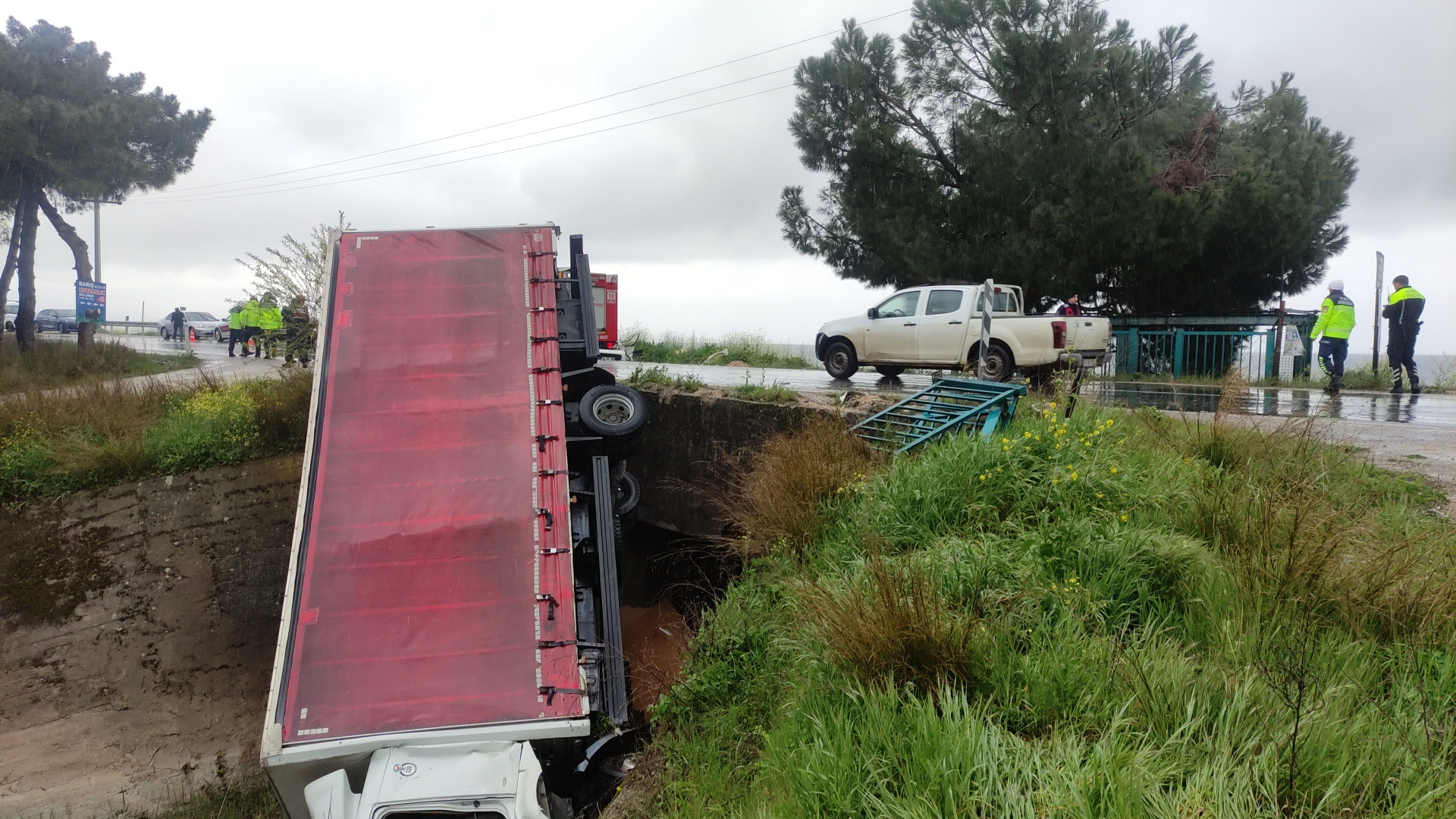 Hafif ticari araçla çarpışan kamyon dere yatağına düştü: 2 yaralı