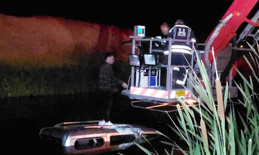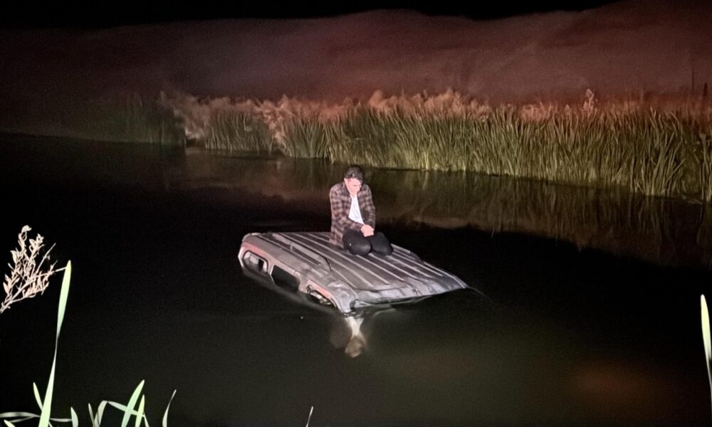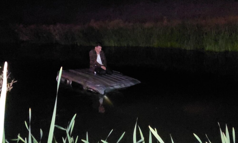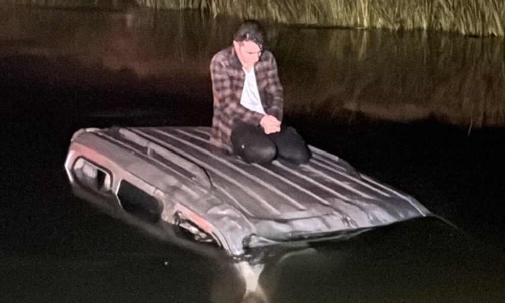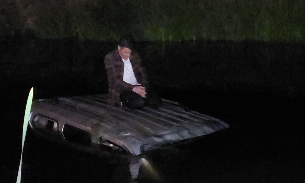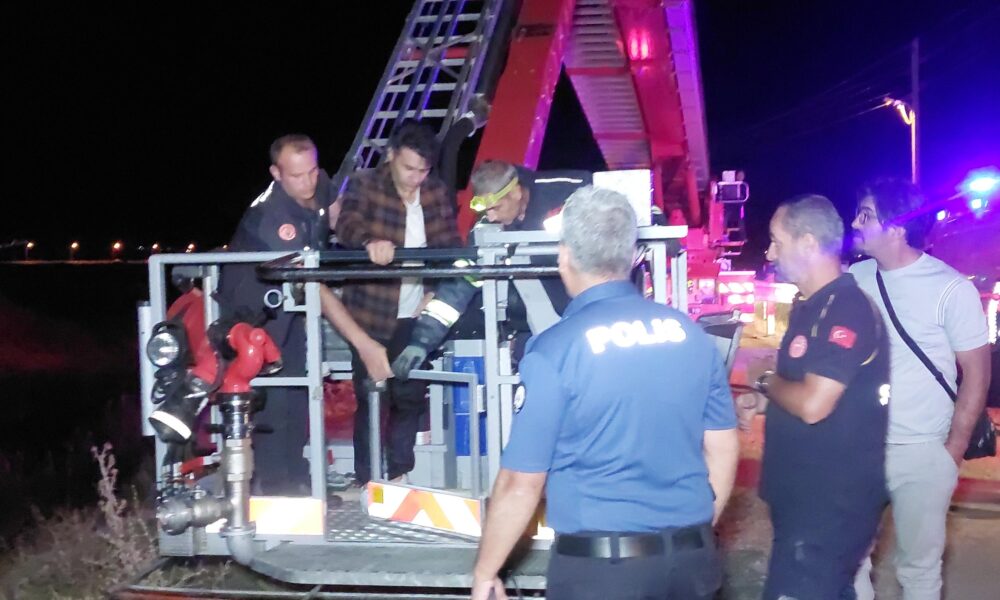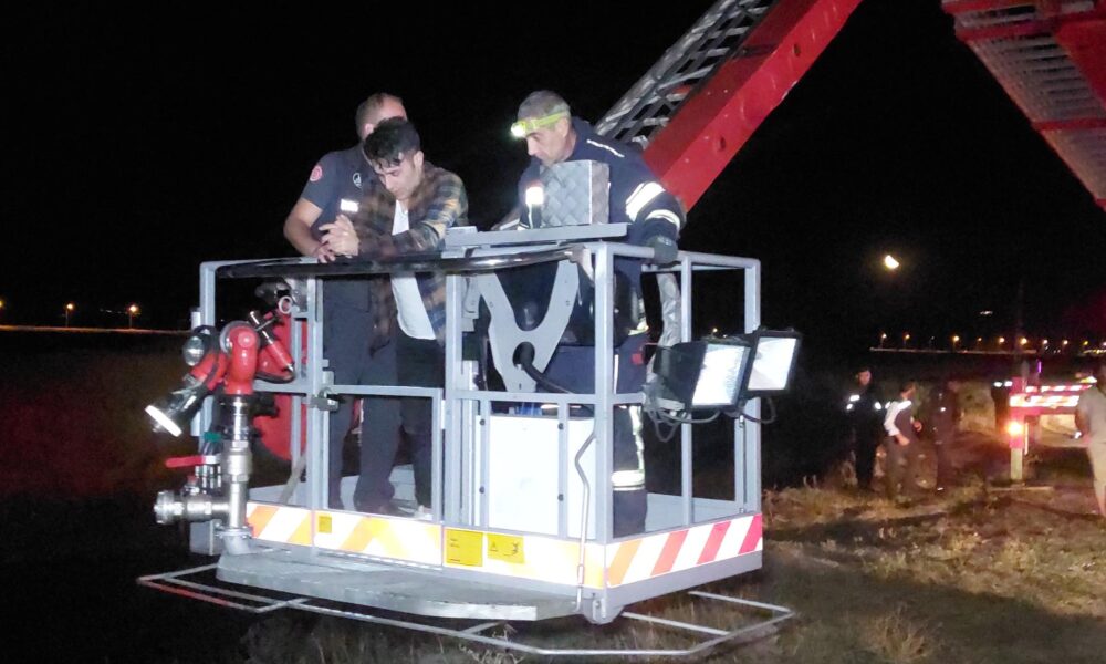 Hafif ticari araçla Karasu Nehri’ne düşen sürücü kurtarılmayı bekledi