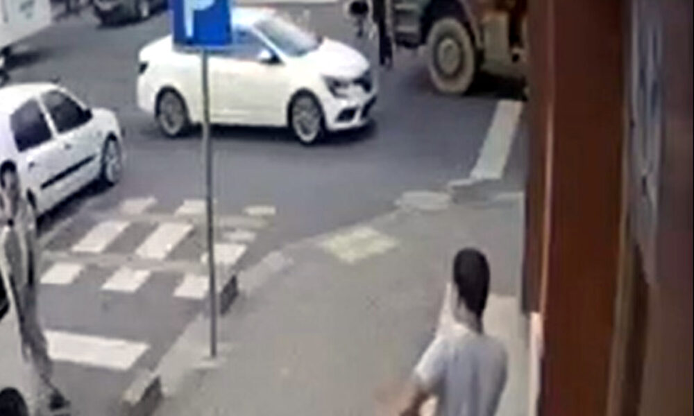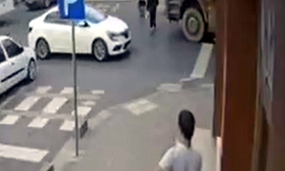 • Tekirdağ'ın Çorlu ilçesinde yolun karşısına geçmek isterken hafriyat kamyonunun çarptığı B.K. (14), yaralandı. Kaza anı, kameraya yansıdı. Fotoğraf: Tekirdağ, (DHA)