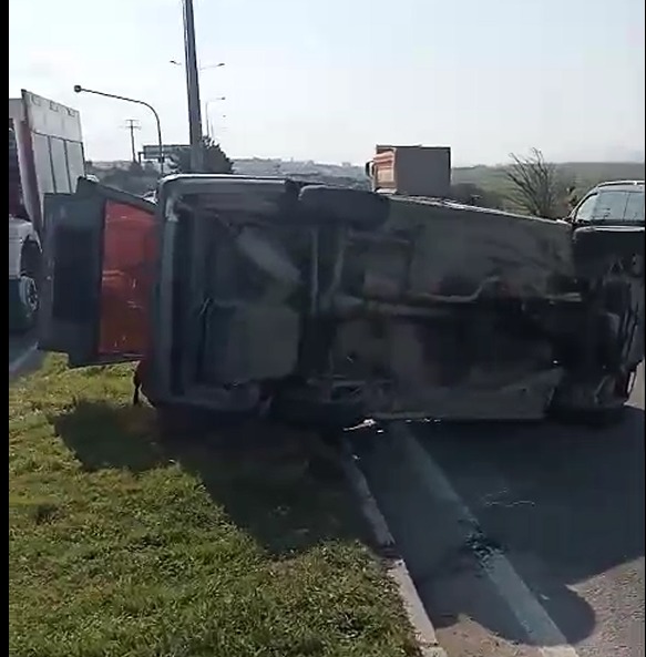 • Bolu’da D-100 karayolunda hafriyat kamyonunun çarptığı otomobil devrildi. Kazada otomobilde bulunan 6’sı çocuk 9 kişi yaralandı. Fotoğraf: Bolu,(DHA)