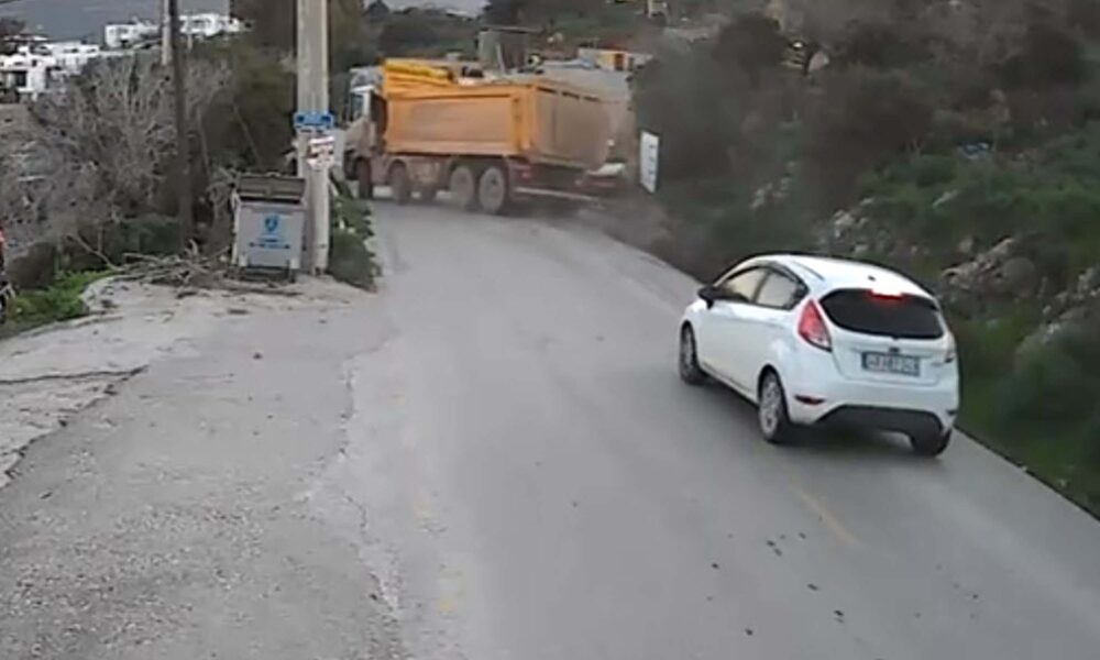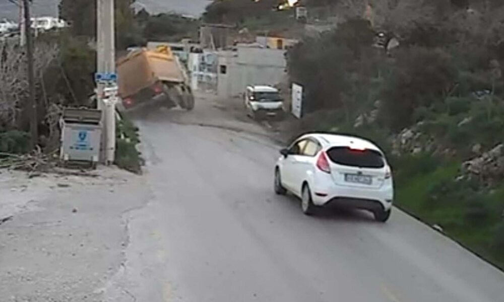 Hafriyat kamyonunun devrildiği kaza kamerada