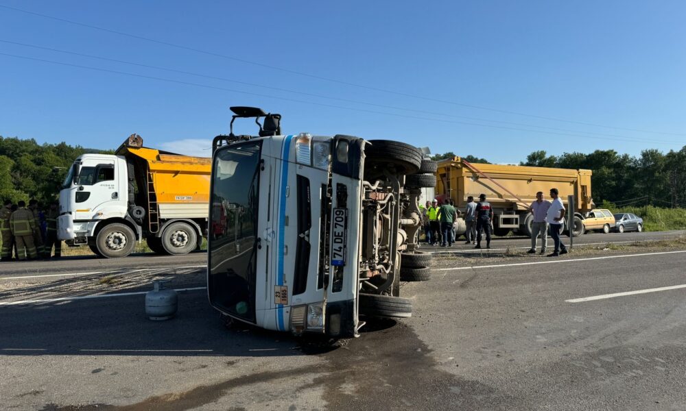 Kaza, saat 18.30 sıralarında Esenyurt mevkisi Yazıcılar köyü girişinde meydana geldi. Zonguldak istikametinden Bartın’a seyir halinde olan Remzi Kanbur (57) yönetimindeki 74 DE 709 plakalı tüp yüklü kamyonet, Yazıcılar köyüne dönmek için yavaşladığı sırada arkadan gelen Hüseyin Pehlivan (48), yönetimindeki 74 ABH 274 plakalı hafriyat kamyonu arkadan çarptı. Kazanın ardından tüp kamyonu refüjde yan yattı. Çevredekilerin haber vermesi üzerine olay yerine sağlık, polis ve itfaiye ekipleri sevk edildi. Kazada hafif yaralanan sürücü Remzi Kanbur ve yanında bulunan Abdullah Köse (55), sağlık ekipleri tarafından Bartın Devlet Hastanesine kaldırıldı. Kaza nedeniyle Bartın-Zonguldak yolunda trafik bir süre tek şeritten verildi. Yola savrulan mutfak tüplerinin gelen başka bir kamyona yüklenmesiyle, yol yeniden trafiğe açıldı. Kazayla ilgili soruşturma başlatıldı. Kaza anı bir evin güvenlik kamerasına yansıdı.
