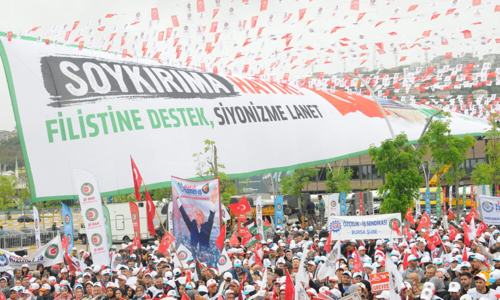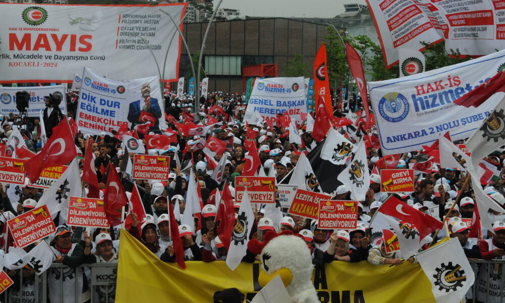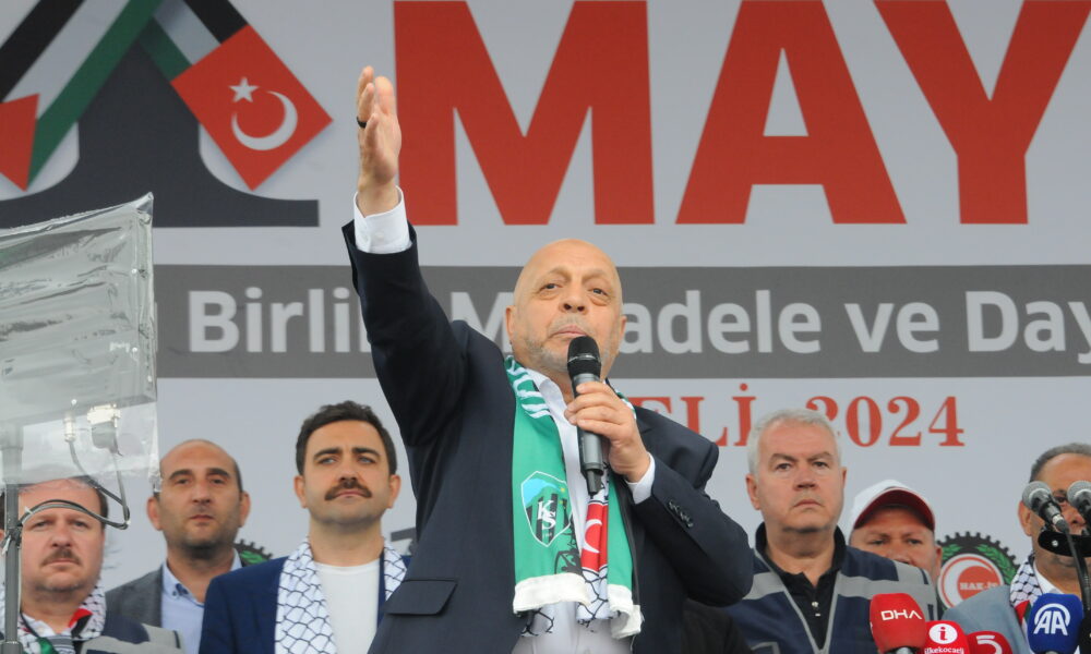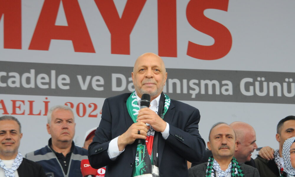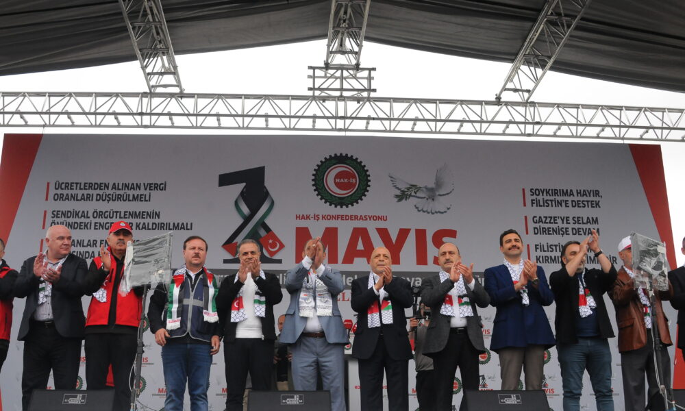 Hak İşçi Sendikaları Konfederasyonu (HAK-İŞ), 1 Mayıs Emek ve Dayanışma Günü’nü Kocaeli’nin İzmit ilçesinde düzenlediği mitingle kutladı. Mitinge, HAK-İŞ Genel Başkanı Mahmut Arslan, konfederasyona bağlı sendikaların temsilcileri ile üyeler ve Filistin İşçi Sendikaları Konfederasyonu Genel Başkan Yardımcısı ve Sağlık Sendikası Genel Sekreteri Abdulhadi Abutaha katıldı. Mitingde sendikal örgütlenmeler ve vergi oranları ile ilgili açıklamalarda bulunulurken, Filistin’e destek mesajları da verildi.