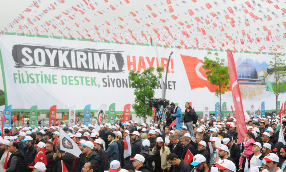 “HAK-İŞ olarak, Siyonistlerin Filistin halkına yönelik artık sistematik bir hale gelen ve her gün dozunu artırarak devam eden soykırımı lanetlemek için buradayız” diyen Arslan, “Çünkü Filistin, Kudüs bizim davamızdır. Kudüs, Aksa bizim kutsalımızdır. HAK-İŞ olarak, bütün imkanlarımızla Kudüs’e sahip çıkmaya, Filistinli kardeşlerimizle birlikte olmaya devam edeceğiz. Başkenti Kudüs olan bağımsız, özgür Filistin devleti kurulana kadar mücadelemiz ve desteğimiz devam edecektir” ifadelerini kullandı.