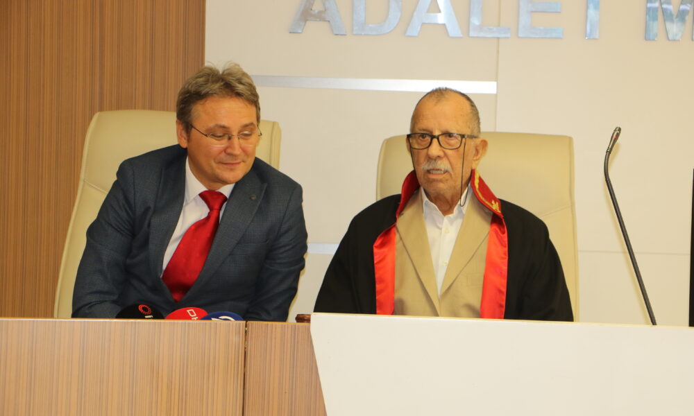 • Bıçakla yaralamalı duruşmasında hakimlik yapan Naci Çelenk’e (Sağdaki cübbeli) 11.Asliye Ceza Mahkemesi Hakimi Gazanfer Bozdağ’a (Solda) eşlik etti. Fotoğraf: Gökhan İÇKİLLİ / Samsun (DHA)