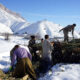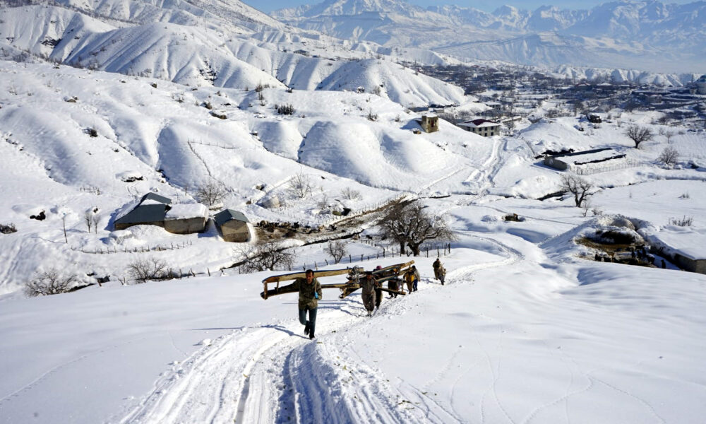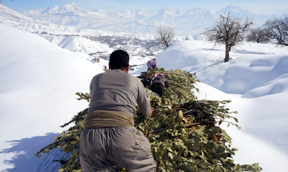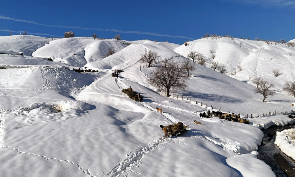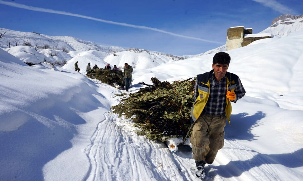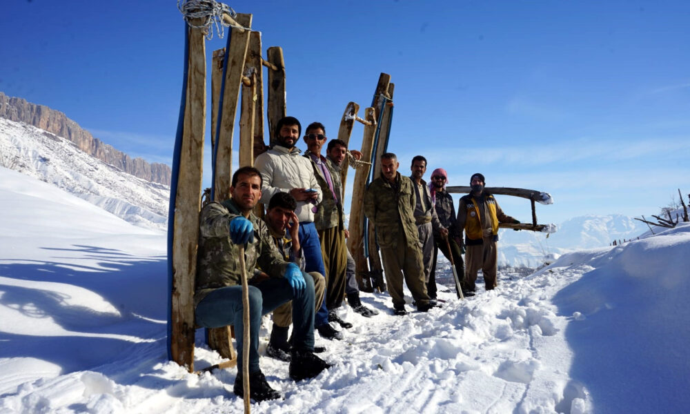 Hakkari’de besiciler karda kızakla hayvanlarına ot taşıyor