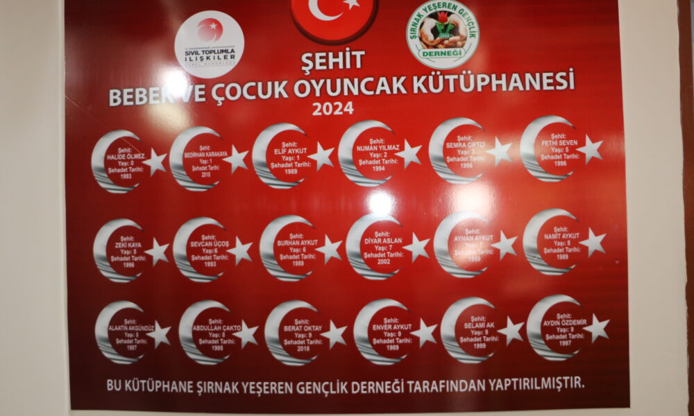 Terör örgütü PKKnın saldırılarında şehit olan çocukların isimlerinin yaşatılması için Yeşeren Gençlik Derneği tarafından proje hazırlandı. İçişleri Bakanlığınca onaylanan Şehit Bebek ve Çocuk Oyuncak Kütüphaneleri projesi kapsamında Yüksekova ilçesi Yeni Mahalledeki Mehmetçik ilk ve Ortaokulu binasının yan tarafındaki anaokulun bir sınıfı kütüphaneye çevrildi. Hizmete sokulan kütüphanenin açılışına; Vali Ali Çelik, İçişleri Bakan Müşaviri Hatice Atan, Yüksekova Kaymakamı Mustafa Akın, İl Milli Eğitim Müdürü Nurettin Yılmaz, siyasi parti temsilcileri, şehit yakınları ve öğrenciler katıldı.