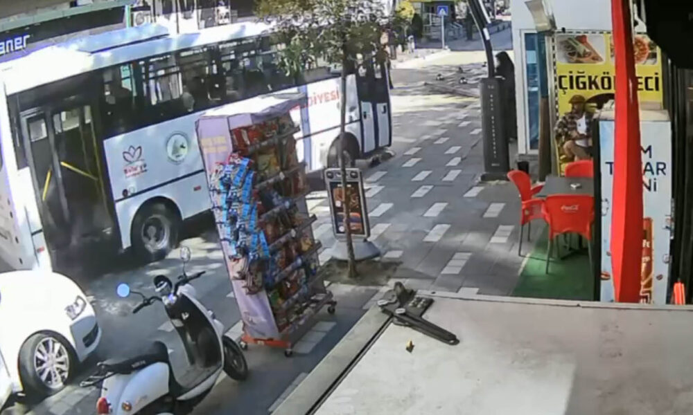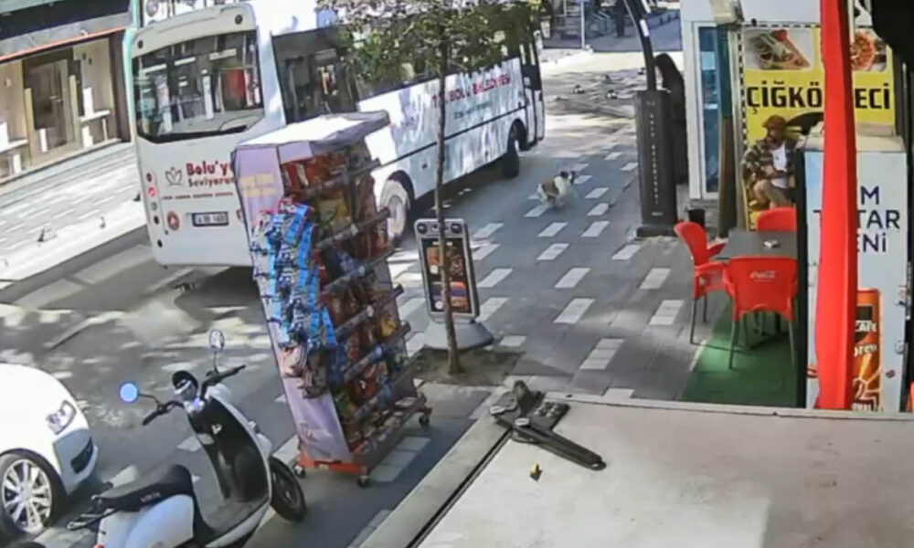 Olay, dün sabah saat 09.30 sıralarında Cumhuriyet Caddesinde meydana geldi. Durağa yanaşan özel halk otobüsü, kaldırımın kenarında yatan köpeği fark etmeyerek ayağını ezdi. Otobüsün altında kalmaktan son anda kurtulan köpek korkuyla kaçarken, o anlar güvenlik kamerasına yansıdı. Olayın ardından özel halk otobüsü çalışanları, ‘Bico’ isimli köpeği aynı bölgede bularak mama verdi. Köpeğin durumunun da iyi olduğu öğrenildi.