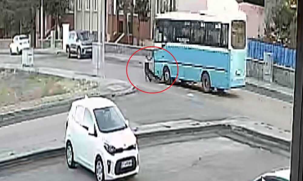 Kaza, bir iş yerinin güvenlik kamerasına yansırken, halk otobüsü şoförü F.İ. gözaltına alındı.